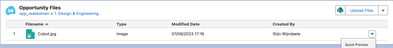 Description: By clicking on the “Quick Preview” button in the dropdown, the file will be previewed on page.